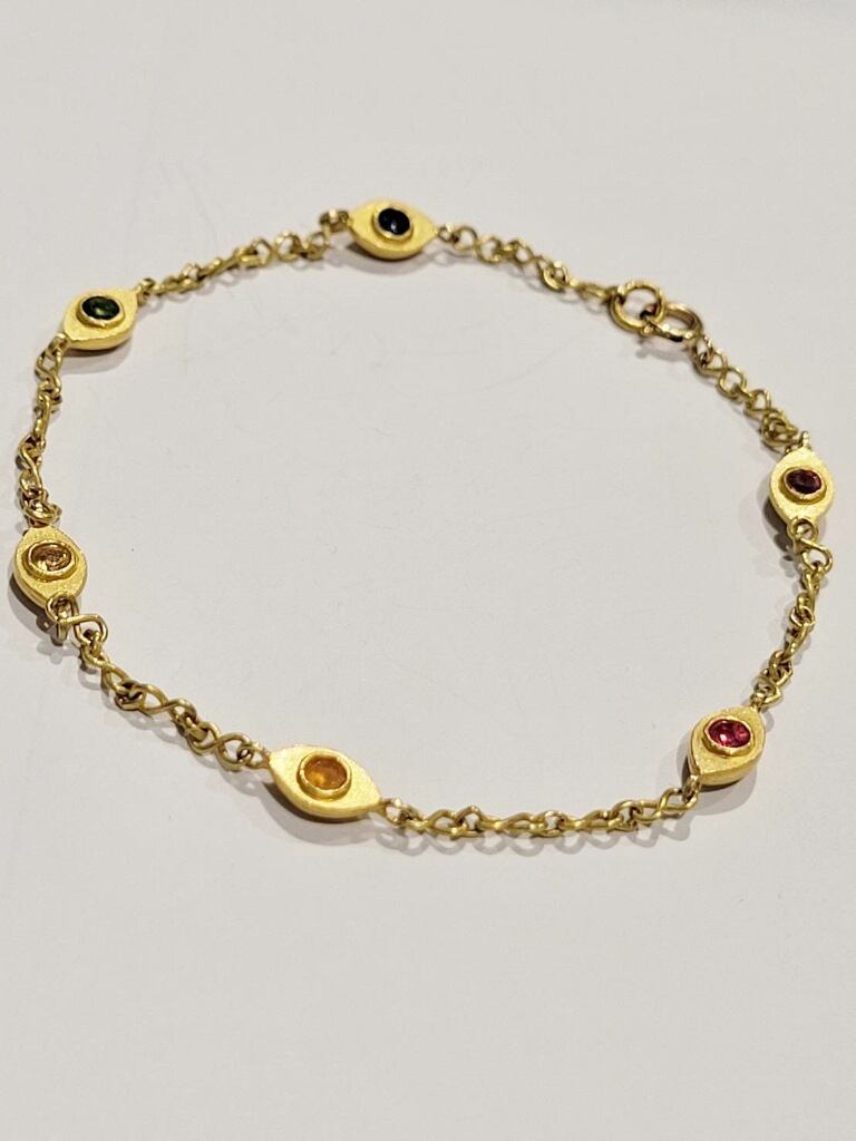 22K YELLOW GOLD MULTICOLORED EYE TO EYE 6”1/2