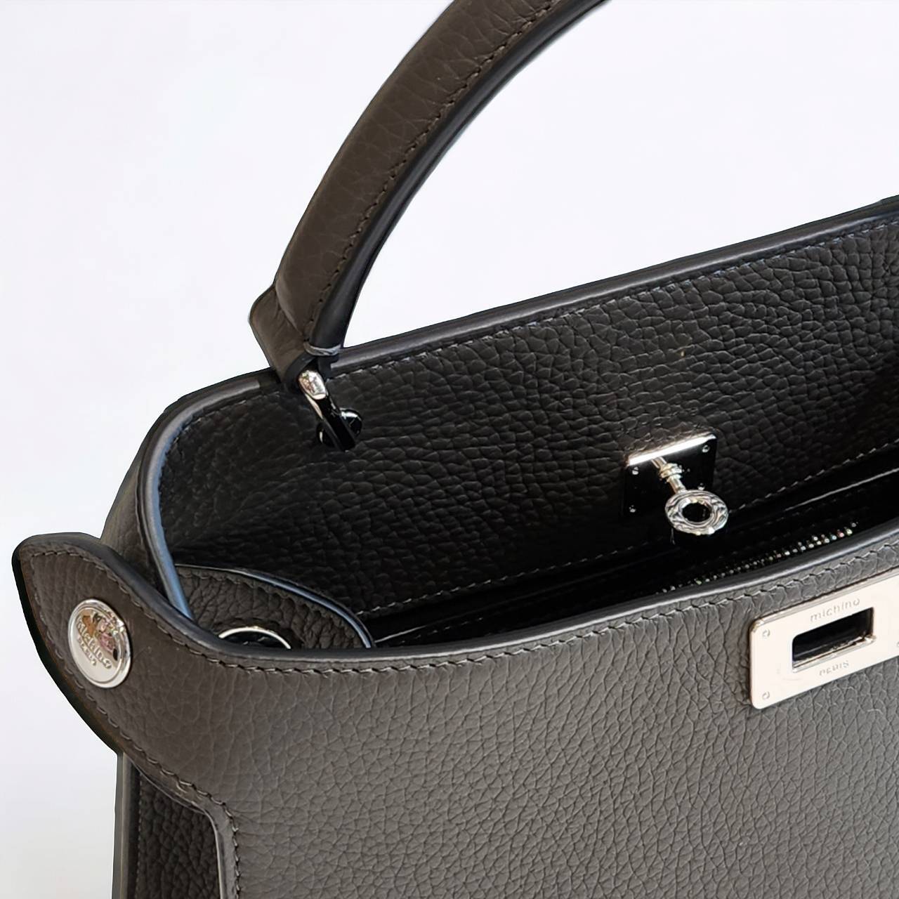 表現しています。シグネチャーのターンロックは、エフォートレスかつ簡単にバッグを開閉できるのがポイント。取り外しできるショルダーストラップでスポーティーな印象をプラスし、クラシックなスタイルをクールに仕上げています。